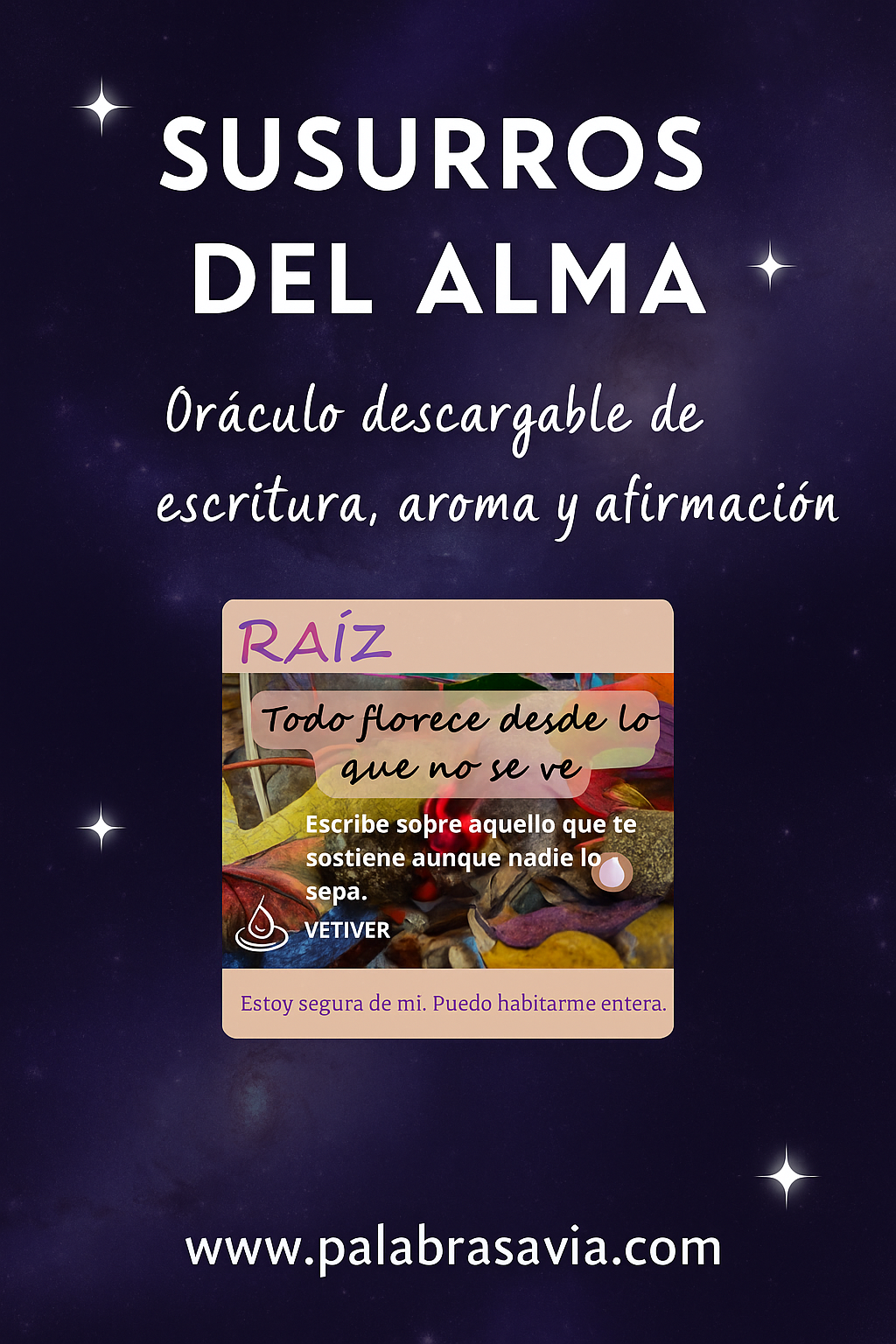 Un oráculo íntimo, poético y transformador para reconectar contigo a través de la palabra, el cuerpo y el aroma.